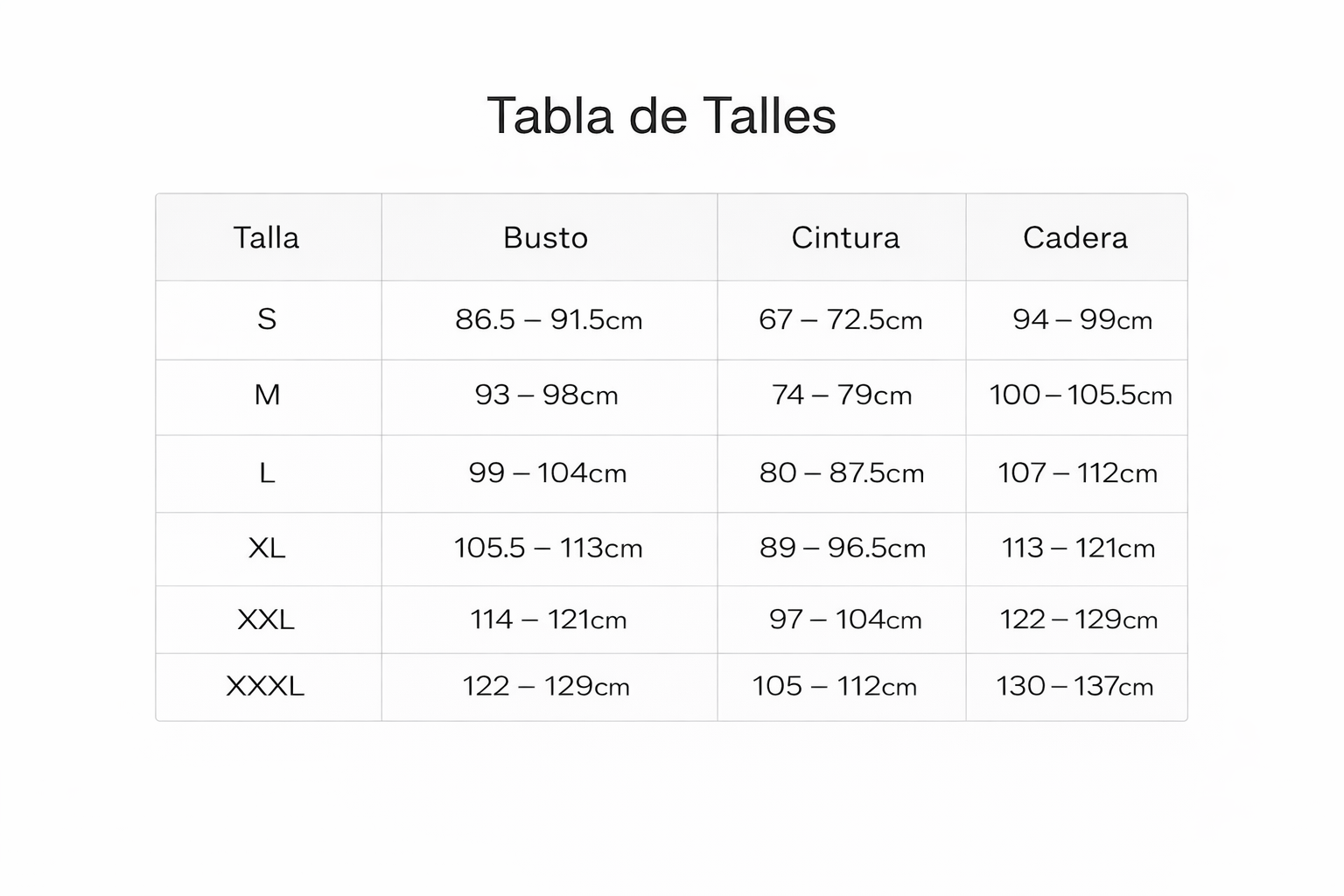 Tabla de Talles